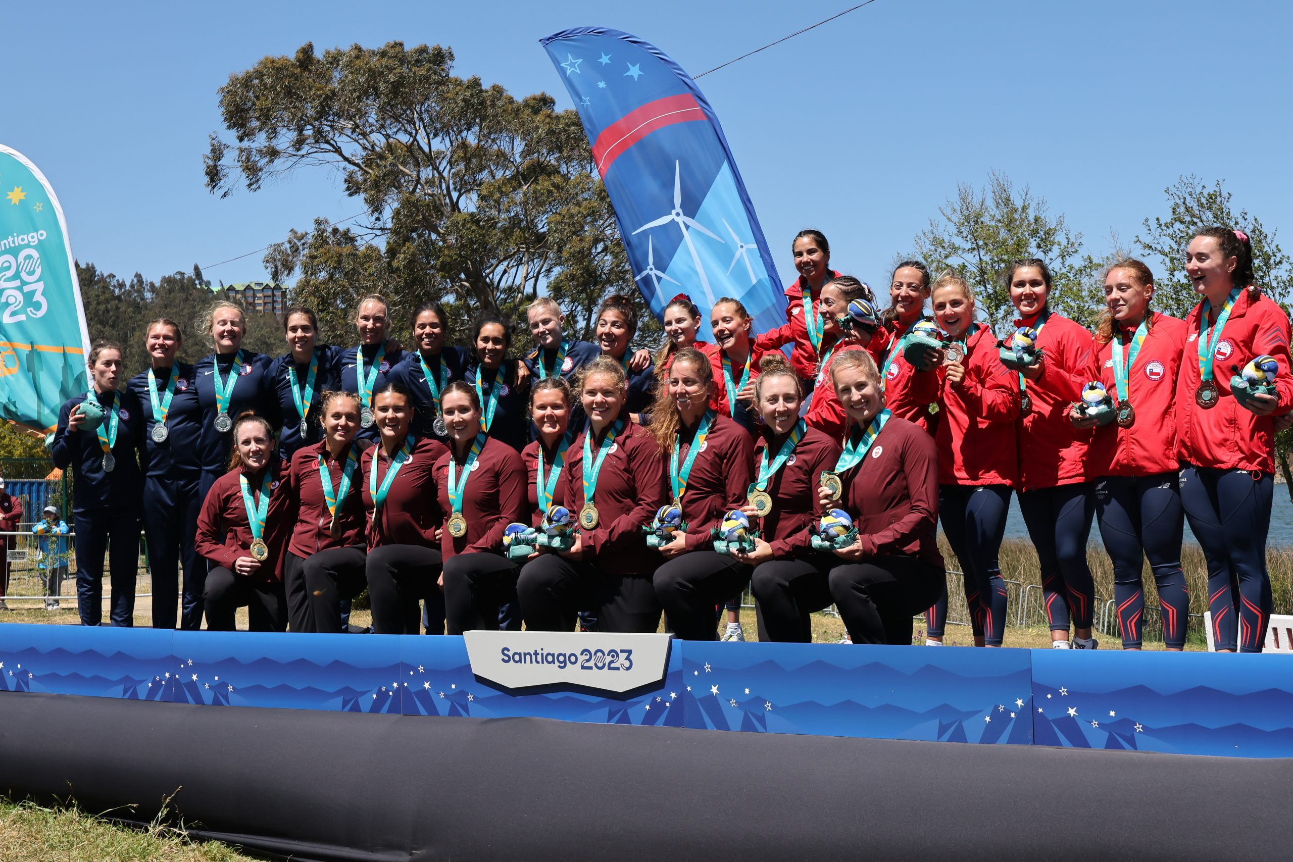 SAN PEDRO DE LA PAZ, CHILE 24 -OCTUBRE- 2023 REMO En la Laguna Grande de San Pedro de la Paz, se realiza la premiación de Remo en los Juegos Panamericanos Santiago 2023, en la Final de la Categoría Ocho con timonel Femenino. (Carlos Acuña/PHOTOSPORT