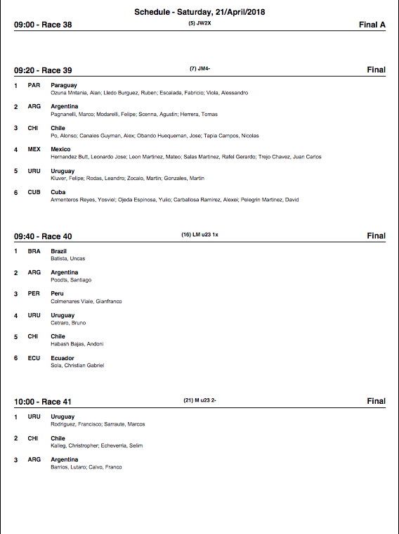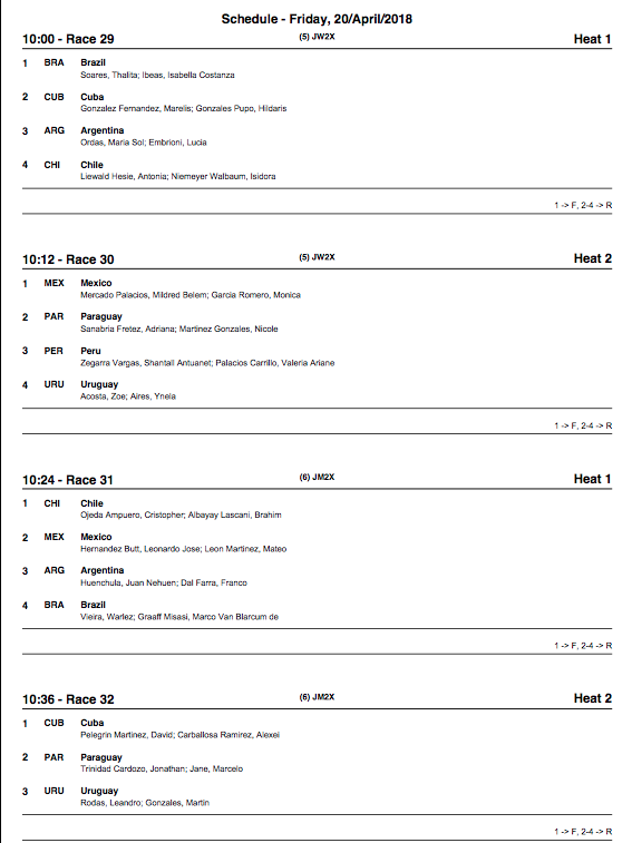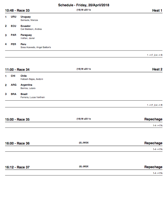 Conoce los horarios de competencias de este Viernes 20 de Abril en el Startlist de competencias de estas clasificatorias Preolímpico Junior y sub23.